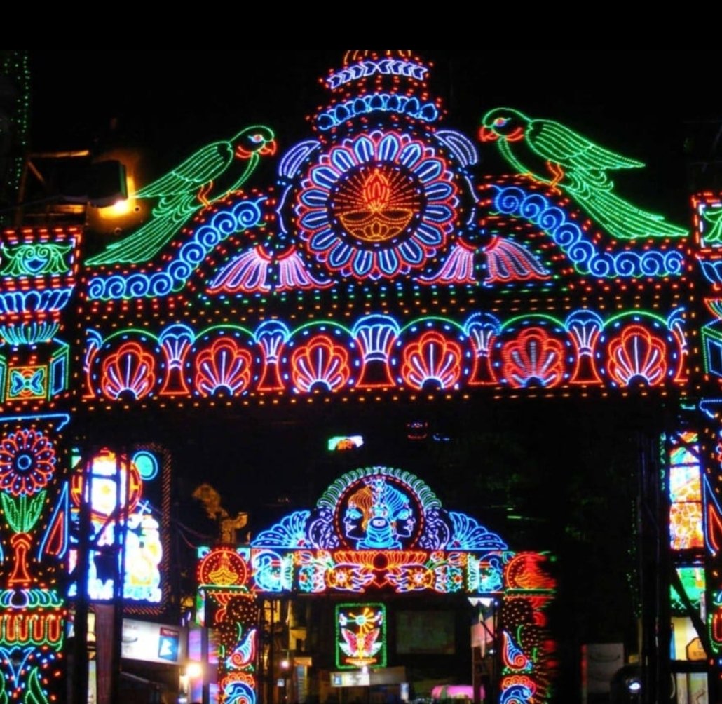 पूजा पंडालों की लाइटिंग देख आकर्षित हो रहे हैं श्रद्धालु