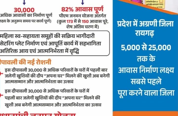 रायगढ़ जिले में वित्तीय वर्ष 2024-25 में स्वीकृत आवासों में से इन 30 हजार से अधिक घरों का निर्माण समय पर पूरा होना न केवल प्रशासनिक दक्षता का उदाहरण है, बल्कि यह ग्रामीण हितग्राहियों के जीवन में स्थायित्व और सम्मान का नया अध्याय भी जोड़ रहा है। इस बार दीपावली उनके लिए वास्तव में विशेष होगी, क्योंकि इस बार दीये उन घरों में जलेंगे, जिनकी दीवारें खुद उनकी मेहनत, उम्मीदों और सरकारी योजनाओं की संवेदनशीलता की कहानी कह रही हैं।