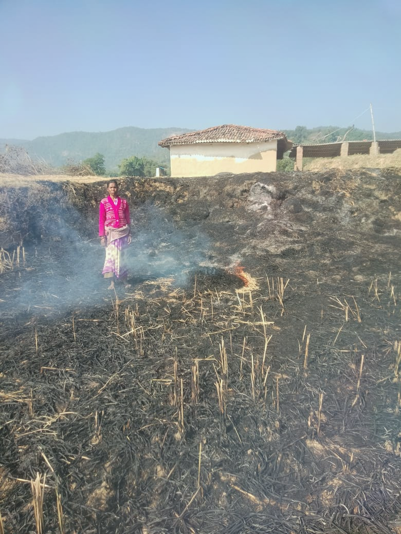 इसी दौरान सिंचाई के लिए लगाए गए तार से सटते ही धान में आग लग गई। आग लगने के बाद ट्रैक्टर को जलने से बचा लिया गया। परंतु धान पूरी तरह जल गया।आग लगने से महिला को बडा नुकसान हुआ है।