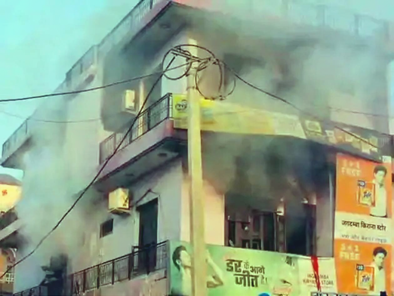 स्टोर के ऊपर बने मकान में सोमवार सुबह आग लग गई और यह इतनी तेजी से फैली कि कुछ ही