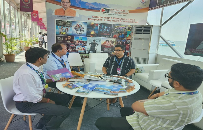 नोडल अधिकारी डॉ. नितिन उपाध्याय ने एक बयान जारी कर बताया कि गोवा में 20 नवंबर से 24 नवंबर तक आयोजित 56वें भारतीय अंतरराष्ट्रीय फिल्म महोत्सव (आईएफएफआई) के वेव्स फिल्म बाजार-2025 में उत्तराखंड पवेलियन फिल्म निर्माताओं एवं निर्देशकों के लिए आकर्षण का केंद्र रहा है। उत्तराखंड पवेलियन में देश विदेश के फिल्म निर्माता और निर्देशकों ने राज्य की फिल्म नीति के बारे में जानकारी ली गई। इनमे बंगाली, तमिल, मलयालम,गुजराती, मराठी आदि भाषाओं के फिल्म निर्माता भी उत्तराखंड में फिल्मों की शूटिंग में रुचि दिखाई है। उन्होंने बताया कि इन फिल्म निर्माताओं राज्य सरकार की ओर से दिए जाने वाले सहयोग एवं सुविधाओं की सराहना की। कई विदेशी फिल्म निर्माता और निर्देशकों ने उत्तराखंड में शूटिंग करने पर सहमति भी दी है। उन्हाेंने बताया कि आगामी वर्ष-2026 में होने वाली राजजात यात्रा के बारे में भी फिल्म निर्माताओं को जानकारी दी गई, कई विदेशी फिल्म मेकर ने डॉक्यूमेंट्री शूट करने की बात कही है।