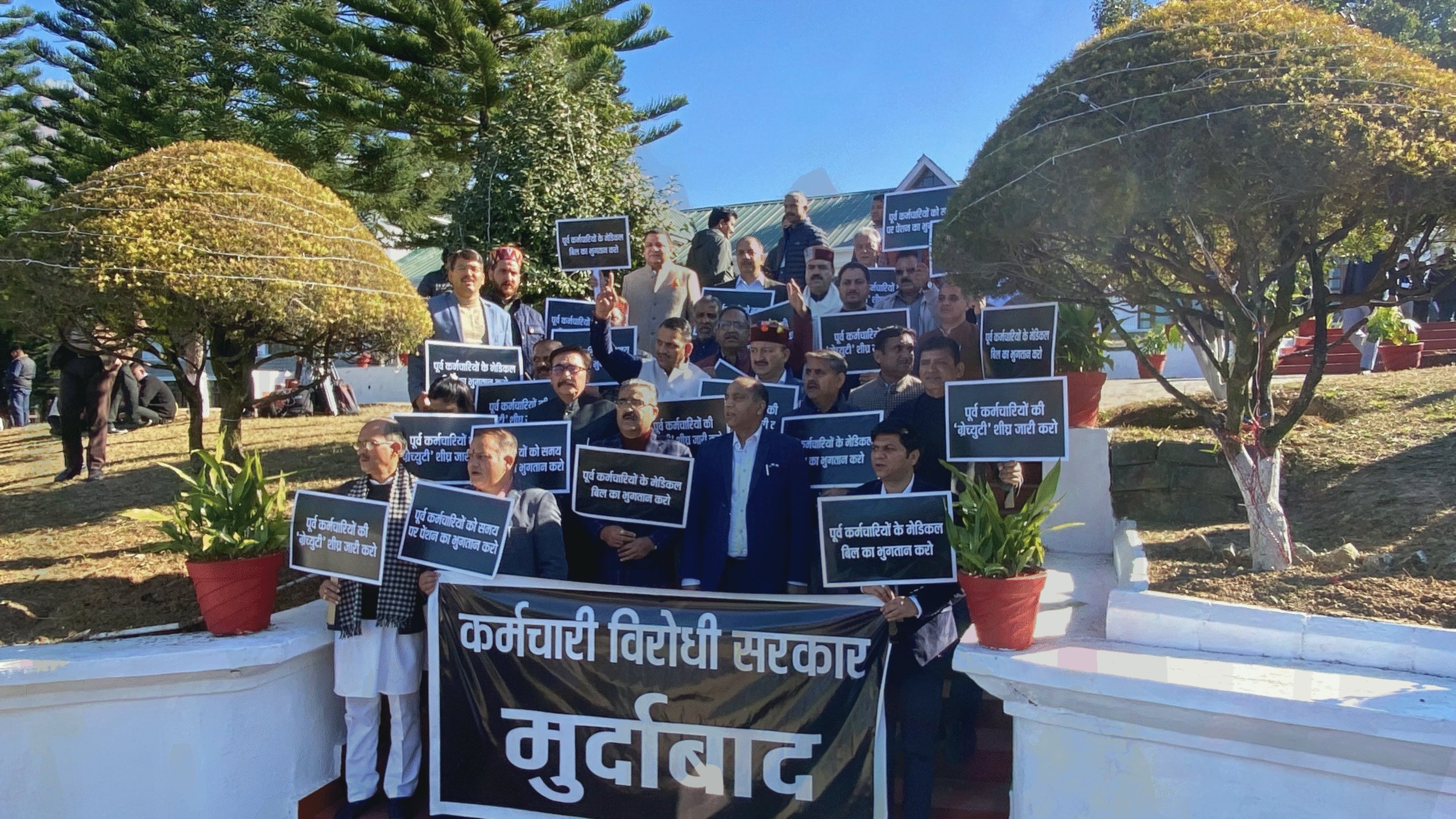 नेता विपक्ष जय राम ठाकुर ने कहा कि वर्तमान कांग्रेस सरकार पूर्व कर्मचारियों का शोषण कर रही है। उन्होंने कहा कि पेंशनर्स को समय पर पेंशन नही मिल रही है। उनके मेडिकल बिलों का भुगतान लंबे समय से नही हो रहा है जिससे बुजुर्ग अवस्था मे पंहुच चुके इन पेंशनर्स को कई तरह की तकलीफों से गुजरना पड़ रहा है। आलम यह है कि उम्र के इस पड़ाव में भी उन्हें अपने हकों की लड़ाई लड़ने के लिए सड़कों पर उतरना पड़ रहा है।