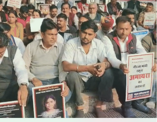 अमायरा को न्याय दिलाने की मांग को लेकर अभिभावकों का प्रदर्शन