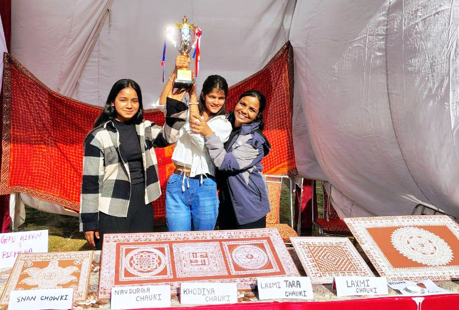 राज्य स्थापना की 25वीं वर्षगांठ पर आयोजित इस राज्यस्तरीय प्रतियोगिता में विश्वविद्यालय स्तर पर चयनित कुमाऊँ विश्वविद्यालय की प्रतिभागियों प्रिंसी वर्मा, प्रतिभा सिंह और सरिता बुधलाकोटी ने “स्नान चौकी”, “नव दुर्गा”, “खुदिया चौकी”, “लक्ष्मी” और “लक्ष्मी तारा चौकी” का ऐपण विधा से आकर्षक चित्रांकन प्रस्तुत किया, जिसे निर्णायक मंडल ने सराहते हुए तृतीय पुरस्कार प्रदान किया।
