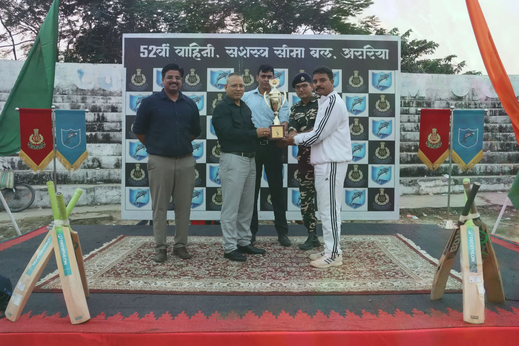 एसएसबी 52 वीं वाहिनी के कमांडेंट महेंद्र प्रताप ने विजेता और उप विजेता टीम को ट्रॉफी देने के साथ बेस्ट प्लेयर और मैन ऑफ द मैच का अवॉर्ड प्रदान किया।टूर्नामेंट में एसएसबी 52 वीं वाहिनी अररिया,एसएसबी 56 वीं वाहिनी बथनाहा के अलावा एसएसबी 18 वीं वाहिनी राजनगर,एसएसबी 45 वीं वाहिनी बीरपुर की टीम ने हिस्सा लिया था।