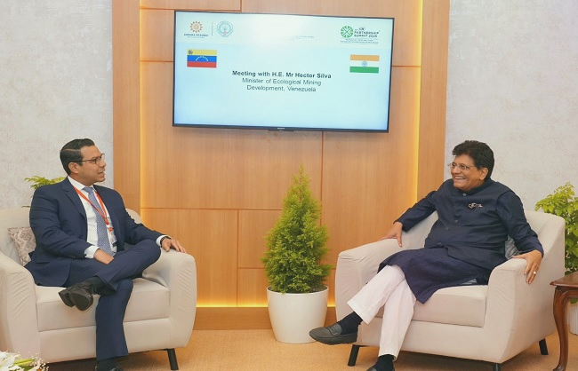 गोयल ने एक्‍स पोस्‍ट में लिखा, वेनेजुएला के पारिस्थितिक खनन विकास मंत्री हेक्टर सिल्वा के साथ एक उपयोगी बैठक हुई। इस दौरान स्थायी खनन प्रथाओं में द्विपक्षीय सहयोग को मजबूत करने और पारस्परिक विकास के अवसरों की खोज पर चर्चा हुई। वेनेजुएला में ओएनजीसी के चल रहे परिचालन खनन और अन्वेषण में गहन सहयोग की संभावनाएं प्रदान कर रहे हैं।