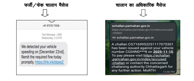 बलरामपुर, 29 दिसंबर ।छत्तीसगढ़ में फर्जी ई-चालान के जरिए साइबर ठगी के मामले सामने आ रहे हैं। ठग परिवहन विभाग की वेबसाइट का क्लोन पेज बनाकर लोगों को ट्रैफिक नियम उल्लंघन का डर दिखाने वाले संदेश भेज रहे हैं और लिंक के माध्यम से उनकी निजी जानकारी व बैंक खातों से पैसे उड़ा रहे हैं।