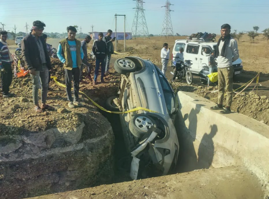 जानकारी के अनुसार छापीहेड़ा रोड़ स्थित ग्राम जालमपुरा के नजदीक तेज रफ्तार टाटा नेक्साॅन कार क्रमांक एमपी 09 एयू 5973 सड़क निर्माण कार्य के लिए किनारे में खोद गए आठ फीट गहरे गड्डे में पलट गई। हादसे के बाद ग्रामीण मौके पर पहुंचे, जिन्होंने तत्परता दिखाते हुए कार सवार विनोद सेंधव, कुलदीप, सचिन, शुभम और कृष्णपाल निवासी देवास को सुरक्षित बाहर निकाला। कार सवार युवक देवास से राजस्थान के कामखेड़ा बालाजी दर्शन करने जा रहे थे। सड़क पर खुदे गड्डे के समीप न तो बैरिकेडिंग थी और न चेतावनी लाइट लगी थी, जिससे कार चालक को खतरे का अंदाजा नही लग सका। स्थानीय लोगों का कहना है यह सिस्टम की लापरवाही का परिणाम है। पुलिस ने मौके पर पहुंचकर घटनास्थल का निरीक्षण कर मामले में जांच शुरु की।