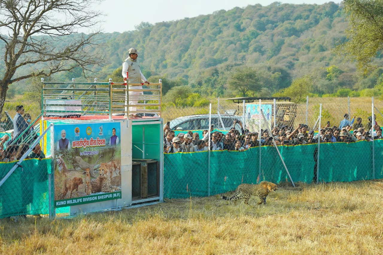 श्योपुर, 04 दिसंबर । मध्य प्रदेश के मुख्यमंत्री डॉ मोहन यादव ने अंतरराष्ट्रीय चीता दिवस के उपलक्ष्य में गुरुवार को श्योपुर जिले में स्थित कूनो नेशनल पार्क पहुंचकर तीन चीतों को खुले जंगल ने रिलीज किया। उन्होंने मादा चीता वीरा सहित उनके 9 माह के दो शावकों को जंगल में विचरण हेतु छोड़ा।