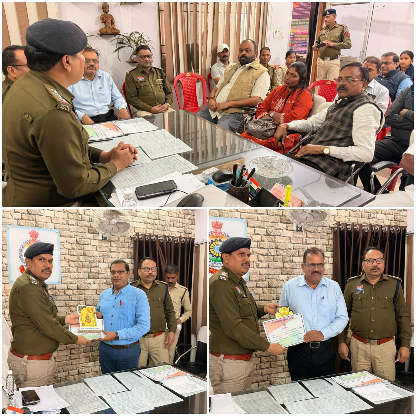 बैठक के दौरान थाना प्रभारी द्वारा समाज के विभिन्न क्षेत्रों में उत्कृष्ट सेवा देने वाले शिक्षकों, पैरा लीगल वालेंटियर और स्वास्थ्यकर्मियों को उनके कार्यों के साथ सामाजिक सहभागिता के लिए प्रशस्ति पत्र एवं स्मृति-चिन्ह भेंट कर सम्मानित किया गया।