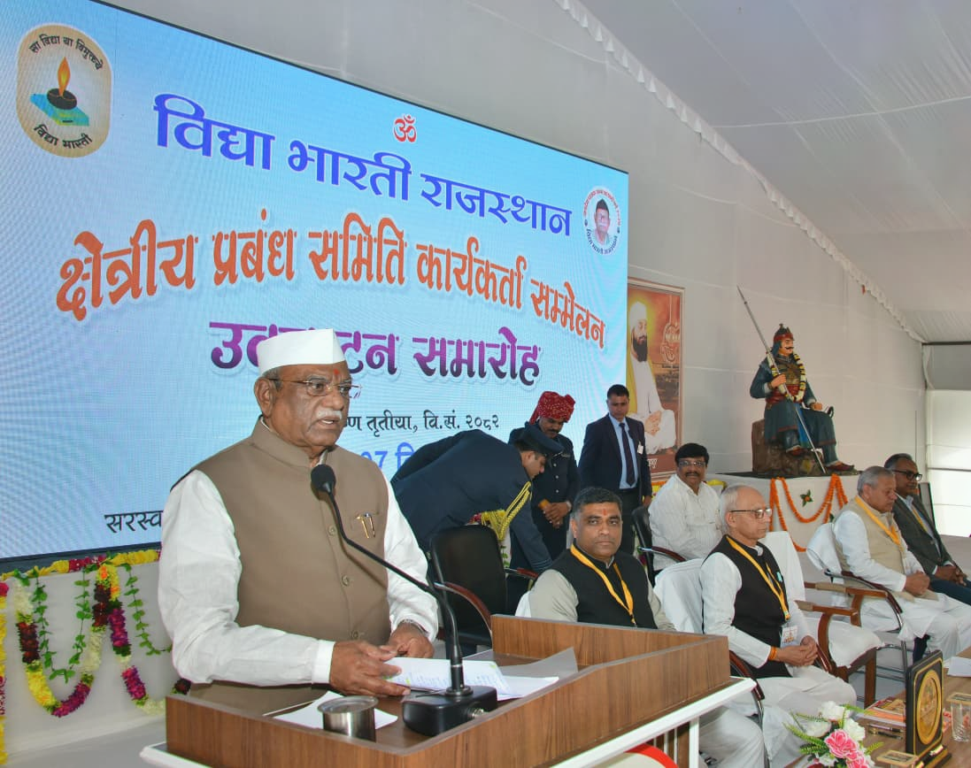 उन्होंने कहा कि पारंपरिक भारतीय ज्ञान प्रणाली को आधुनिक शिक्षा से जोड़कर राष्ट्र को नई दिशा प्रदान करने में आज विद्याभारती महती भूमिका निभा रहा है। यह संगठन रटंत-आधारित शिक्षा को समाप्त कर नवाचार-केंद्रित शिक्षा के प्रसार में जो भूमिका निभा रहा है, वह अतुलनीय है। उन्होंने नई शिक्षा नीति के आलोक में विद्या भारती विद्यालयों की प्रासंगिकता बताते हुए कहा कि उच्च शिक्षा के अंतर्गत छात्रों को अनुभव और अनुकरण के माध्यम से सीखने को प्रोत्साहित किया जाए। उन्होंने कहा कि विद्या भारती प्राचीन भारतीय ज्ञान परंपराओं को एकीकृत करते हुए मूल्य-आधारित शिक्षा, पर्यावरण संरक्षण और राष्ट्रीय जागरूकता के लिए जो कार्य करता आ रहा है, उसका प्रभावी प्रसार भी दूसरे क्षेत्रों में हो।