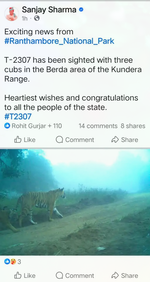 वन विभाग के अनुसार शावकों की उम्र करीब ढाई से तीन माह के बीच है। बाघिन आमतौर पर शावकों को शुरुआती दो महीनों तक छिपाकर रखती है, इसलिए अब उनकी तस्वीरें सामने आ पाई हैं। बाघिन टी-2307 फिलहाल कुंडेरा रेंज के गैर-पर्यटन क्षेत्र में सक्रिय है, जहां वह शावकों की परवरिश कर रही है।