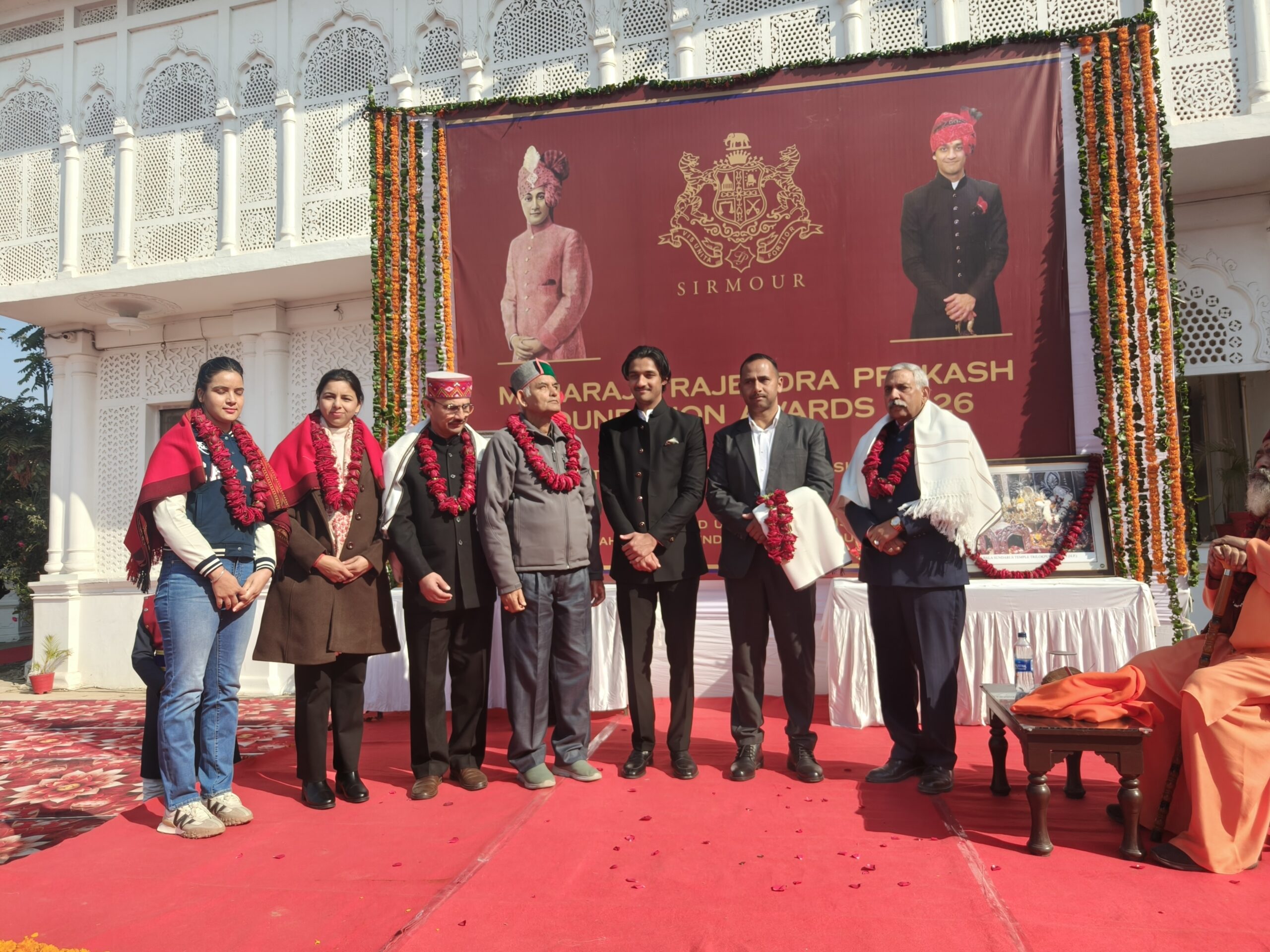 नाहन, 11 जनवरी । ऐतिहासिक रॉयल पैलेस में रविवार को महाराजा राजेंद्र प्रकाश फाउंडेशन के तत्वावधान में एक पुरस्कार समारोह का आयोजन किया गया। इस अवसर पर जिला सिरमौर के विभिन्न क्षेत्रों में उत्कृष्ट योगदान देने वाली छह विशिष्ट हस्तियों को सम्मानित किया गया। यह समारोह सिरमौर रियासत के अंतिम शासक महाराजा राजेंद्र प्रकाश की जयंती के उपलक्ष्य में आयोजित किया गया, जिसे फाउंडेशन द्वारा लगातार तीसरे वर्ष आयोजित किया जा रहा है। कार्यक्रम का उद्देश्य जिले का नाम रोशन करने वाली विभूतियों को पहचान और सम्मान प्रदान करना है।