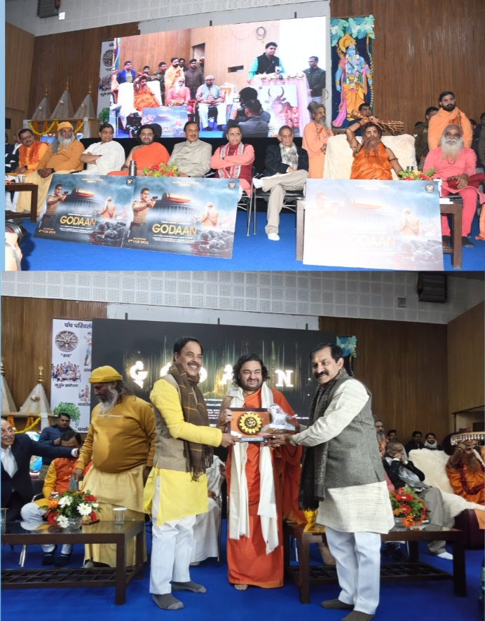 नोएडा, 16 जनवरी । गौमाता पर आधारित फिल्म ‘गोदान’ का पोस्टर, टीजर और गीतों का विमोचन शुक्रवार काे नोएडा सेक्टर-12 स्थित भाऊ राव देवरस सरस्वती विद्या मंदिर में किया गया। इस अवसर पर सनातन संस्कृति के प्रतिनिधियों के रूप में देश की जानी-मानी आध्यात्मिक एवं सामाजिक विभूतियों ने गौमाता पर अपने विचार प्रकट किये। फिल्म आगामी 6 फरवरी को देशभर में रिलीज होगी।