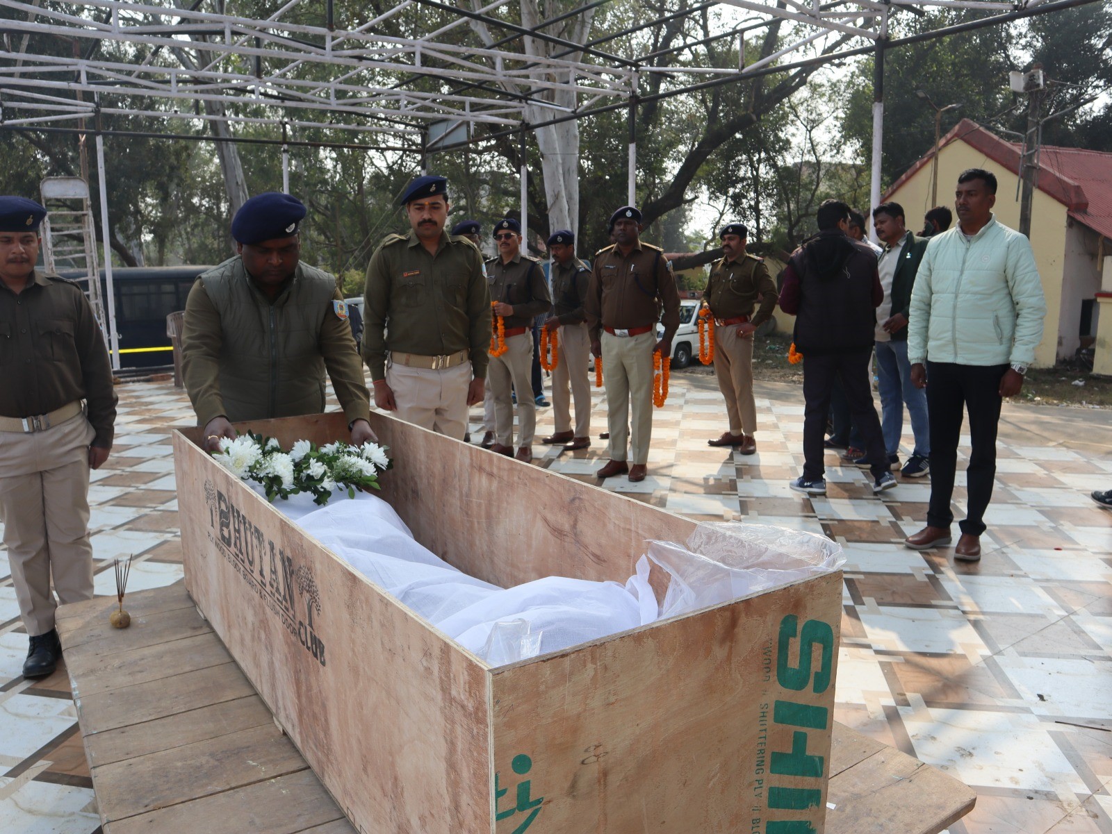घटना की सूचना पर दिवंगत एसआई के परिवार दुमका पहुंचा। इसके बाद पुलिस लाईन मैदान में एसआई हेमंत भगत के पार्थिव शरीर को एसपी पितांबर सिंह खेरवार सहित अन्‍य पुलिसकर्मियों ने सलामी दी और श्रद्धांजलि अर्पित की।