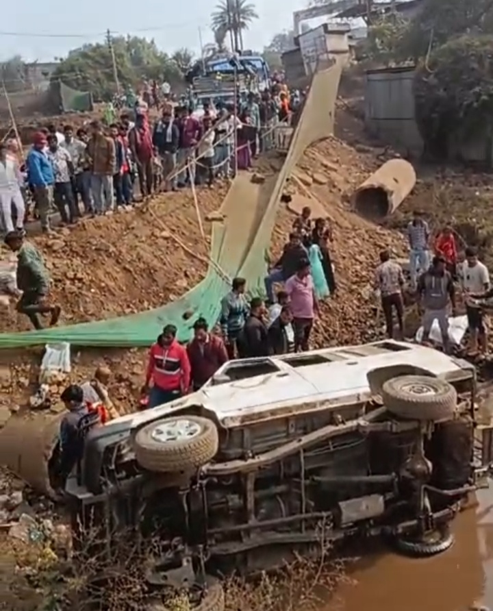 झाबुआ, 03 जनवरी । जिले के थांदला थाना क्षेत्र अंतर्गत थांदला नगर के समीप लाखियाखारी पर निर्माणाधीन पुल से आज शनिवार दोपहर एक तूफान गाड़ी अनियंत्रित होकर गहरी खाई में गिर गई। दुर्घटना में एक ही परिवार के सदस्यों सहित आठ यात्री घायल हो गए। सूचना मिलने पर थांदला पुलिस मौके पर पहुंची और स्थानीय लोगों की सहायता से घायलों को खाई से निकालकर सिविल अस्पताल पहुंचाया गया।