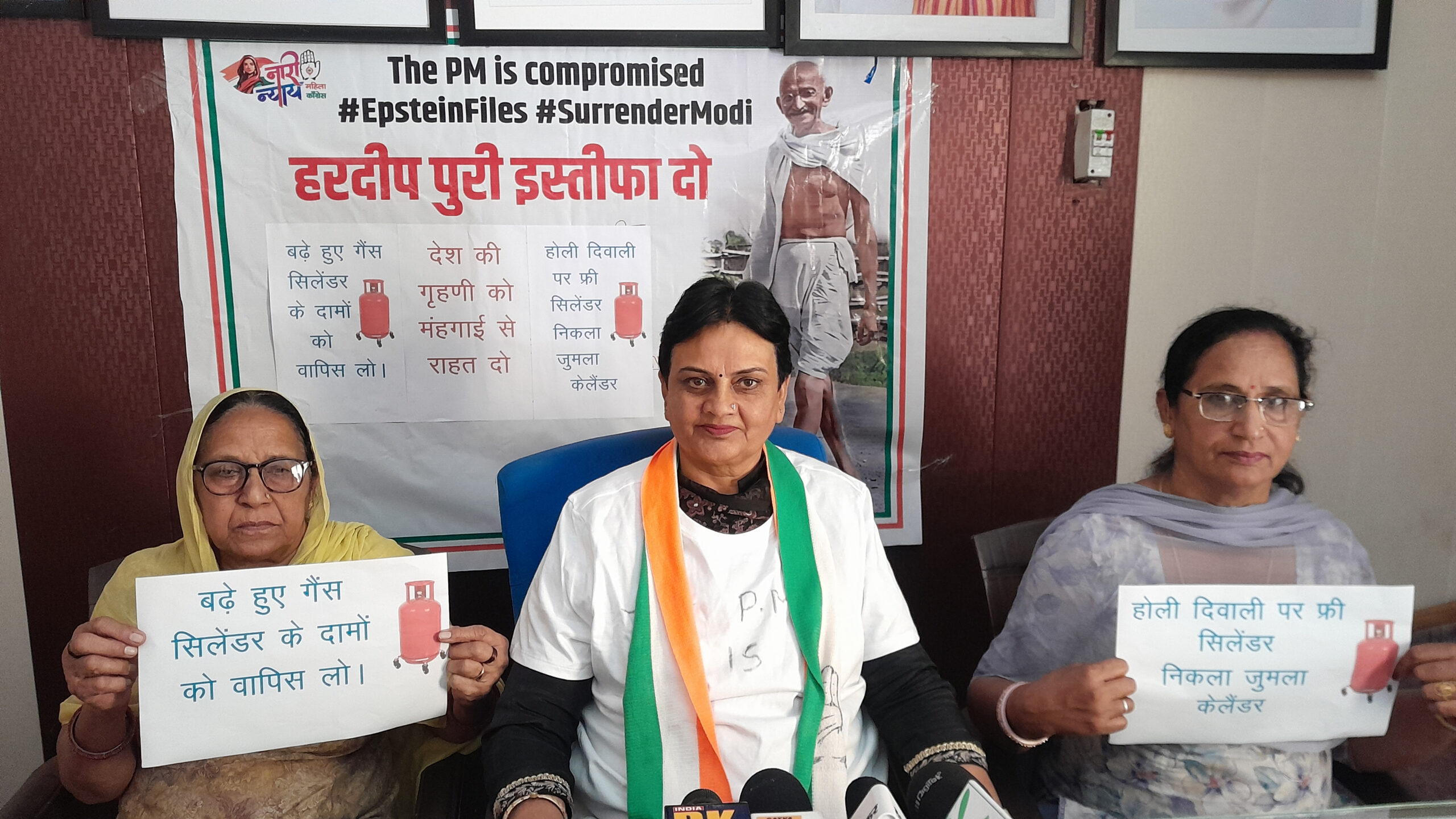 जिला महिला कांग्रेस अध्यक्ष कृष्णा फौगाट ने कहा कि आज आमजन को पर्याप्त गैस न मिलने के कारण ग्रामीणांचल व शहरों में भी महिलाएं चूल्हे पर भोजन बनाने को विवश हैं। उन्होंने कहा कि आज हालात इतने गंभीर हो चले हैं कि गैस एजेंसियों के बाहर लंबी लंबी उपभोक्ताओं की कतारें लग रही हैं जो ये सिद्ध करने के लिए काफी हैं कि देश प्रदेश में ईंधन की कोई कमी नहीं है। उन्होंने कहा कि भाजपा जुमलों की सरकार है और होली, दीपावली पर गैस सिलेंडर फ्री देने की घोषणा भी महज जुमला ही साबित हुई। कांग्रेस नेत्री ने कहा कि सिरसा शहर की विभिन्न बस्तियों में खुली छोटी छोटी दुकानों पर आम उपभोक्ता दो-दो किलो गैस भरवाने को मजबूर हैं। उन्होंने कहा कि गैस एजेंसियों से गैस सिलेंडर न मिलने के कारण जमाखोरी की स्थिति पैदा हो गई है जबकि भाजपा शासन गलत आंकड़े व दावे प्रस्तुत कर स्थिति को सामान्य बताकर आमजन को भ्रमित कर रहा है। कृष्णा फौगाट ने कहा कि आज प्रदेश का हर वर्ग शासन की गलत नीतियों से आहत है। बेरोजगार युवा वर्ग नशे की दलदल में फंसता जा रहा है तो व्यापारियों से फिरौतियां मांगी जा रही हैं वहीं महिलाओं के प्रति अपराधों के ग्राफ में काफी बढ़ौतरी हुई है, जिसे रोक पाने में पुलिस प्रशासन पूरी तरह से विफल साबित हुआ है। कांग्रेस नेत्री ने कहा कि आज केंद्र सरकार ने विश्व के प्रभावी देशों के शासनाध्यक्षों के समक्ष घुटने टेक दिए हैं जिससे देश का सम्मान वैश्विक स्तर पर कम हुआ है। इस अवसर पर उनके साथ शंकुतला देवी, अंगूरी देवी वर्मा, कृष्णा भांभू, अनिल गुप्ता, जगदेव फौगाट आदि मौजूद थे।