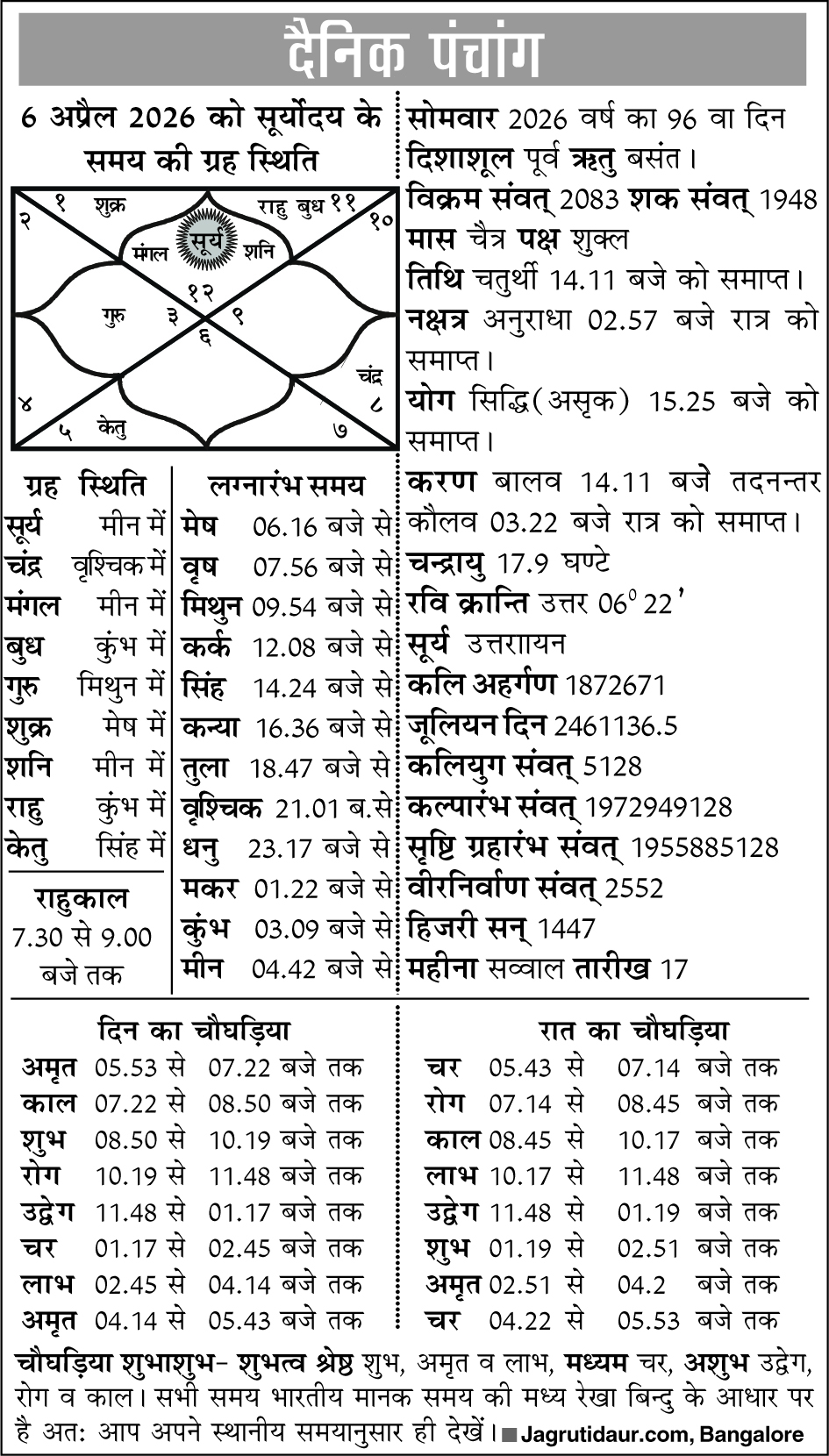 6 अप्रैल 2026 को सूर्योदय के समय की ग्रह स्थिति
